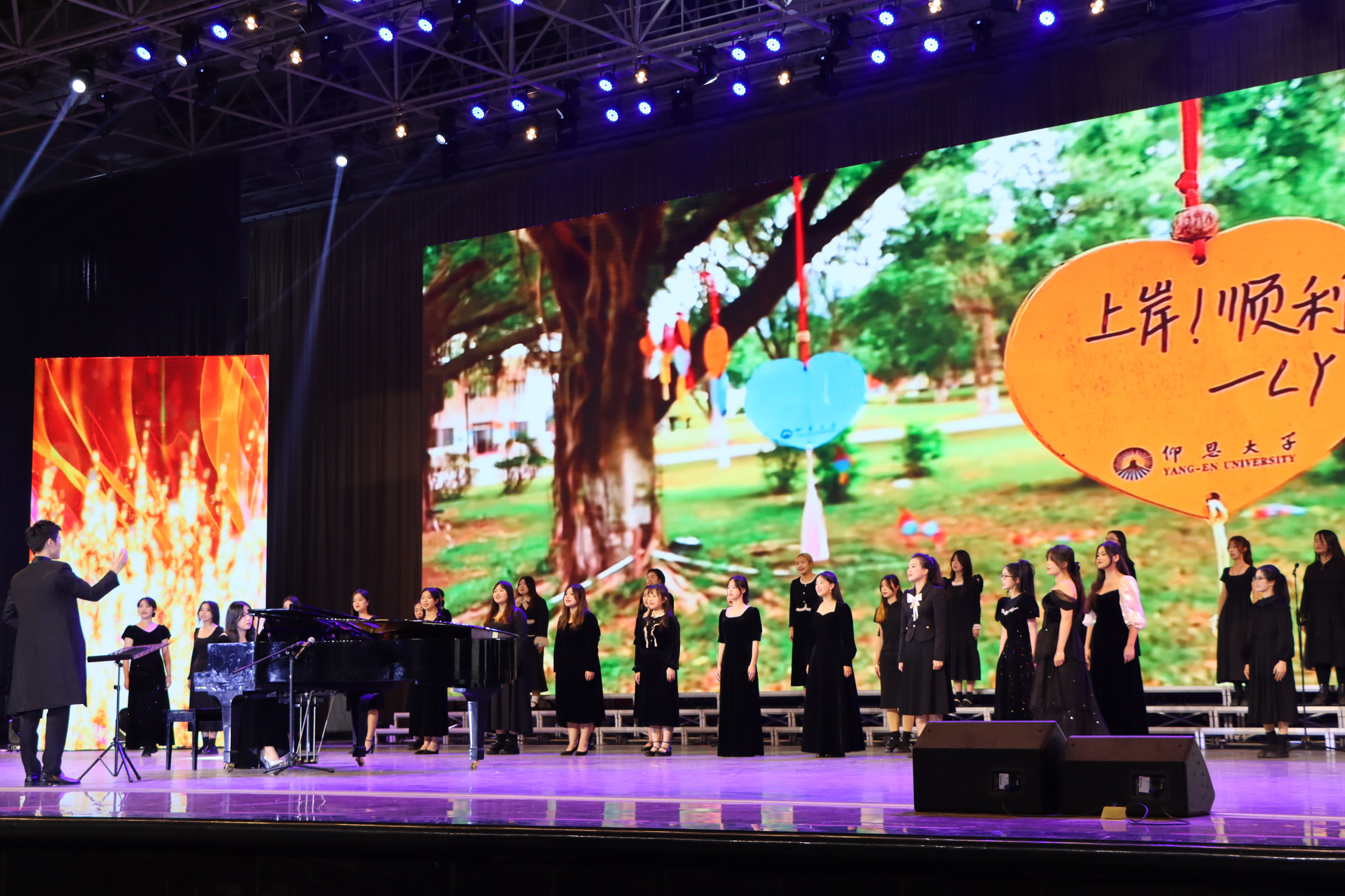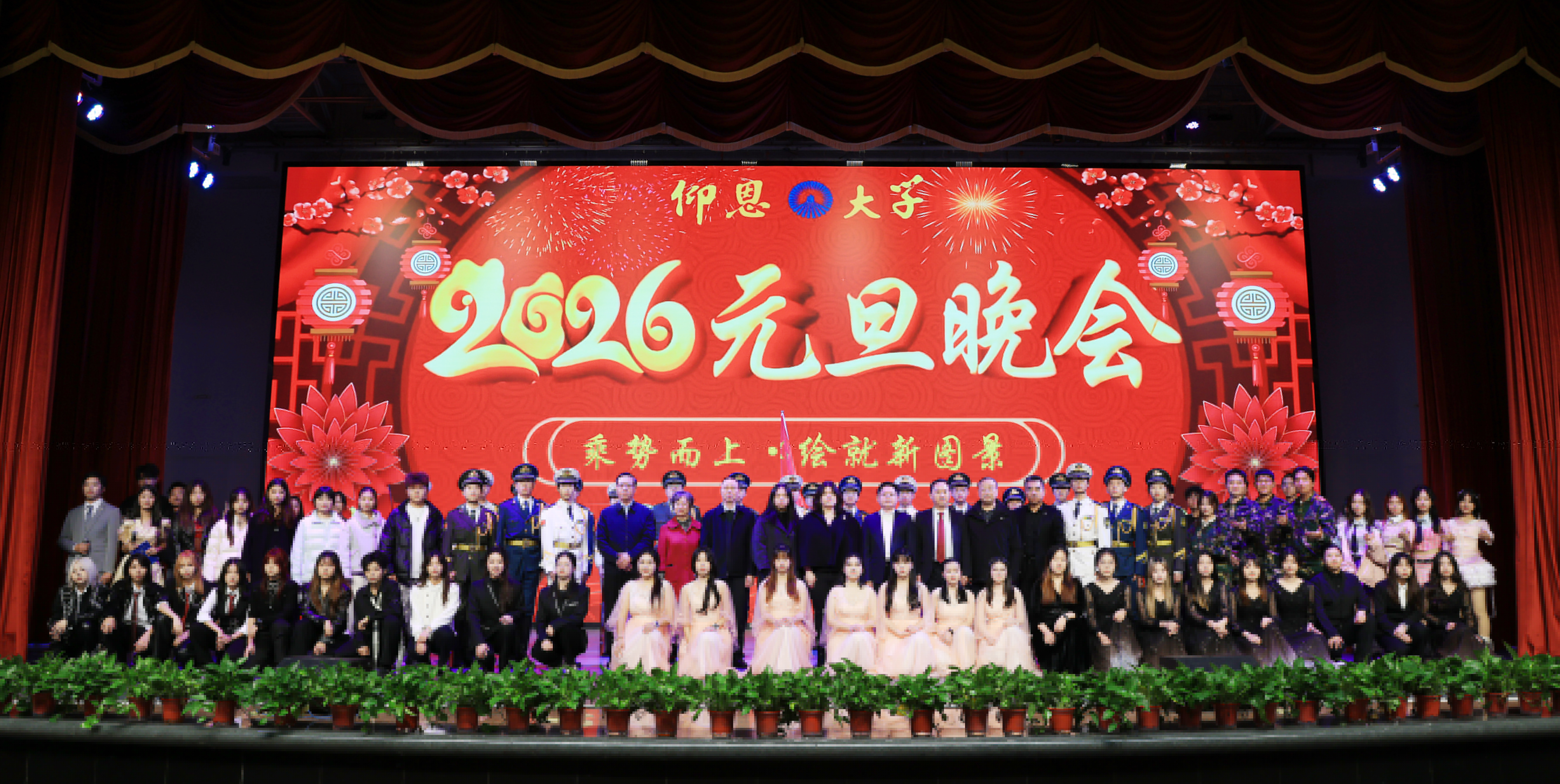 靈蛇獻瑞辭舊歲,駿馬奔騰啟新程。12月29日晚,我校在第一教學區普照大禮堂隆重舉行2026年元旦晚會。中國農業銀行泉州分行副行長杜毓昆、福建和誠鞋業有限公司人力資源部經理賴雅茜、仰恩大學董事會副董事長吳浩鈴,全體校領導,各院(系)、部門負責人出席觀看晚會。在一個多小時的晚會中,師生們歡聚一堂,共同辭舊迎新。校長王維月為元旦晚會致辭各級領導觀看元旦晚會校長王維月為晚會致辭,代表學校向全體師生員工、廣大海內外校友和長期關心支持仰恩大學事業發展的社會各界朋友,致以節日的問候和新年的祝福。他指出,2025年在仰恩大學董事會領導下,學校堅持以習近平新時代中國特色社會主義思想為指導,始終銘記校主吳慶星先生、林惠女士“愛國興學、造福桑梓”的初心使命,凝心聚力,奮勇爭先,在黨建引領、教育教學、人才培養、師資隊伍建設、校園文化、產教融合、校企合作、協同育人、社會服務等方面取得了累累碩果,展現了欣欣向榮、蒸蒸日上的新氣象。展望2026年,他希望全體師生員工扎實做好審核評估的整改落實、精心繪制“十五五”發展藍圖、共建安全、綠色、文明的校園,以更加飽滿的熱情、更加昂揚的姿態,譜寫仰恩大學新的輝煌篇章。晚會節目